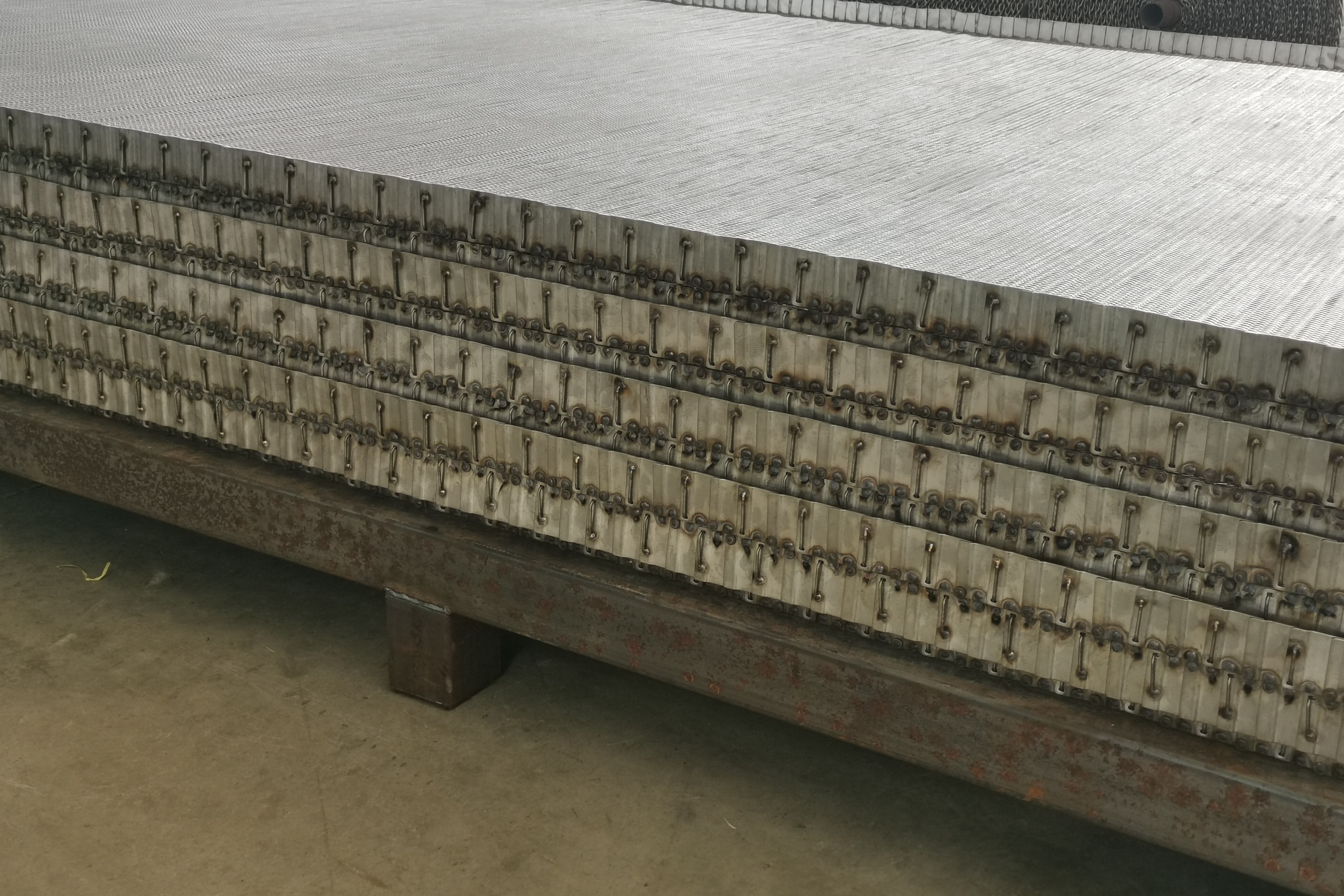 電廠鋼帶式排渣機(jī)網(wǎng)帶也被稱作“環(huán)保網(wǎng)帶”,由不銹鋼絲網(wǎng)帶和不銹鋼板組合而成,主要應(yīng)用于發(fā)電廠干式排渣系統(tǒng)。