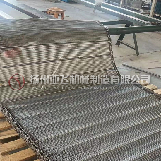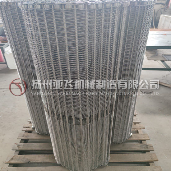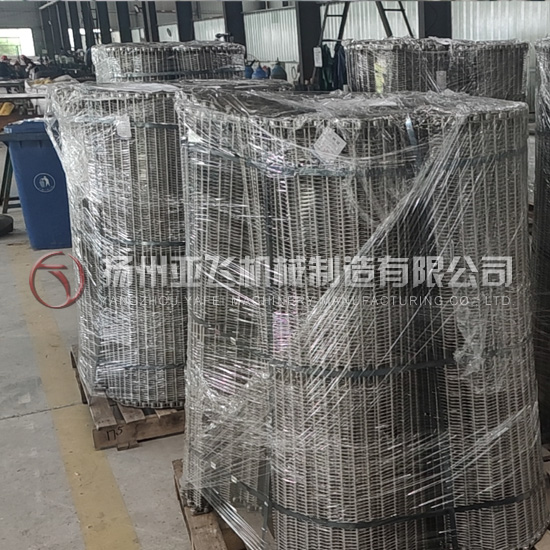 螺旋速凍機(jī)網(wǎng)帶也稱馬蹄式網(wǎng)帶,該金屬網(wǎng)帶用鉤編形式而成;編織簡潔、美觀實用,網(wǎng)帶也可采用標(biāo)準(zhǔn)鏈條傳動。