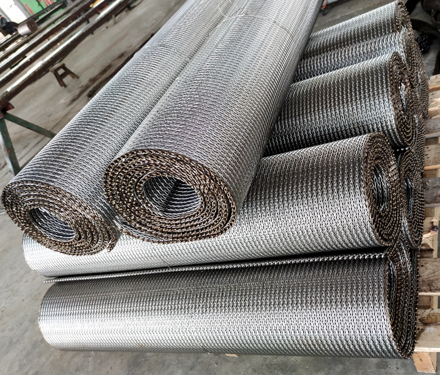用于自動(dòng)化地板涂裝生產(chǎn)線包括地板烘干回火線、流平機(jī)、輥涂線,使用鏈條型網(wǎng)帶,網(wǎng)帶使用穿絲繞絲編織,兩邊焊接不銹鋼鏈條,網(wǎng)帶中間添加不銹鋼隔套,可以減少摩擦力防止刮蹭,更益于地板的生產(chǎn)和品質(zhì)。
