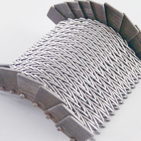 粉末冶金燒結(jié)網(wǎng)帶是多用于粉末冶金制品燒結(jié)爐,將同一方向的螺線交互編入,在交叉處把力骨線穿過(guò)去的型式。