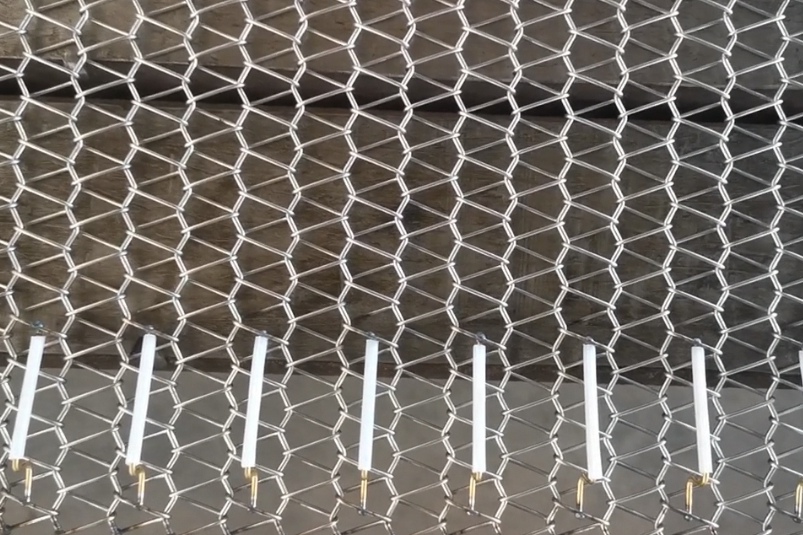 金屬裝飾網(wǎng)簾采用優(yōu)質(zhì)不銹鋼、黃銅、磷銅編織而成,經(jīng)過(guò)拉絲、捻股、合繩、織網(wǎng)、拋光、漂洗等工序。